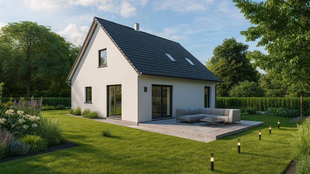 Hinweis: Bei dem abgebildeten Haus handelt es sich um ein Beispiel einer möglichen Ausführung. Die Grundrissgestaltung und Raumaufteilung ist nach Ihren Wünschen möglich. Der Kaufpreis versteht sich zuzüglich der Hausanschlusskosten, der allgemeinen Baunebenkosten und Außenanlagen. Das Grundstück ist im Kaufpreis NICHT enthalten. Angebotspreis ohne Bodenplatte / Fundamente. Unser Angebot ist freibleibend. Irrtum und Zwischenverkauf bleiben vorbehalten. Übrigens: Wussten Sie schon, dass eine Finanzierung oft auch mit wenig Eigenkapital möglich ist?! Gerne prüfen wir Ihren Anspruch auf öffentliche Fördergelder und unterstützen Sie bei der Beantragung. Fragen? Sprechen Sie uns an und nutzen die individuelle Förderberatung! Interessiert? Bei Anfragen geben Sie uns bitte Ihre vollständigen Kontakdaten inkl. Anschrift und Telefonnummer an. Nur dann können wir diese bearbeiten.
