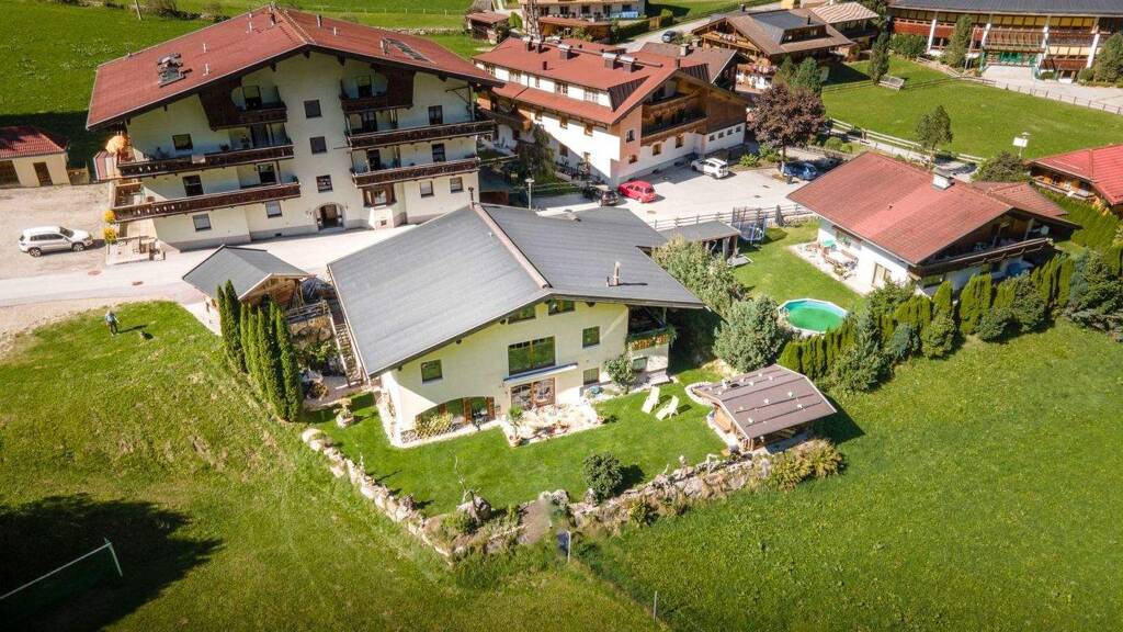 Das Untergeschoss unterteilt sich in ein Apartment mit 66 m² zzgl. Terrasse sowie in den vorgesehenen Hallenbad-Bereich, in dem sich eine weitere Wohnung mit 79 m² befindet. Das Hallenbad ist momentan nicht in Betrieb; die Oberfläche ist mit Eichenbodenparkett geschlossen. Eine Öffnung wäre jederzeit möglich. Im Erdgeschoss erstrecken sich 158 m² Wohnfläche in einem luxuriösen Apartment mit offenem Kamin. Von hier erreicht man auch die beheizte Garage und den Ausgang zum Carport. Im Obergeschoss liegt eine entzückende 58 m² große Wohnung mit Holzsichtdachstuhl und Balkon. Die Ausstattung zieht sich durch alle Einheiten; wunderbare Holz- und Steinböden verfeinern das Ambiente. Die Sanitärräume begeistern mit modernstem Design und besonderen Highlights. Im Stil von Herning und Kare Design punktet die Einrichtung. Große Fensterflächen, Zugänge zum Garten, zur Terrasse und zum Balkon lassen Sonnenlicht hereinströmen. Die reine Bergluft der umliegenden Wälder auf einer Seehöhe von ca. 1008 m macht Ginzling zu einem Erholungsort. Der außergewöhnlich schöne, einzigartige Stil zieht sich durch das Landhaus und ermöglicht in jedem Geschoß Entspannung und Privatsphäre. Ein Großteil der Einrichtung bleibt erhalten; alle Räume sind bis ins kleinste Detail vollständig ausgestattet. Das Gartenhaus verleiht dem Ort das tirolerische Flair und lädt zum gemütlichen Beisammensein ein.