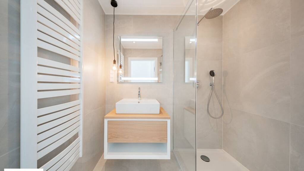 * Badezimmer mit bodenebener Dusche