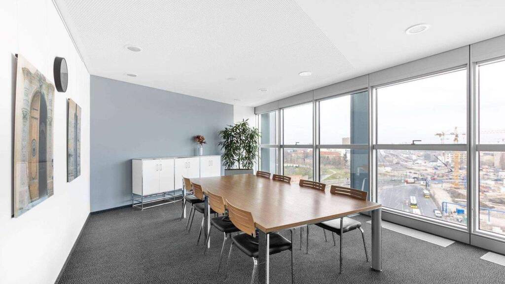 Der Bürostandort am Europaplatz 2 in Berlin ist Teil eines modernen Glas- und Stahl-Bürokomplexes oberhalb des Berliner Hauptbahnhofs. Das Gebäude erstreckt sich über mehrere Etagen und bietet hochwertige Arbeits- und Geschäftsflächen in zentraler Lage. Helle Räume mit großzügigen Fensterflächen sorgen für eine gleichmäßige Belichtung und ein angenehmes Arbeitsumfeld.
