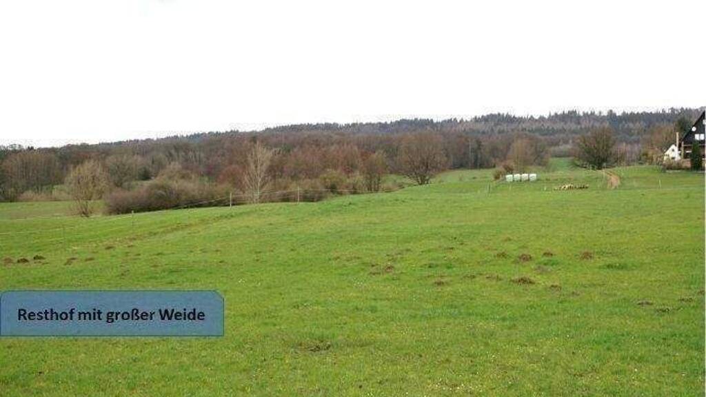 Insgesamt 15.275m² Hof-/Gebäudefläche und direkt angrenzendes Weideland zur Tierhaltung. Vom Hof ergibt sich ein herrlicher Panoramablick über Wiesen und Felder zum Wald.