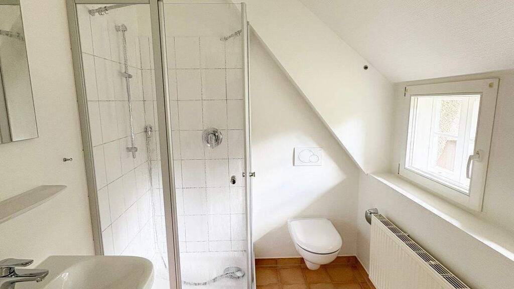 Im Obergeschoss befindet sich ein großzügiges Zimmer mit angrenzendem Duschbad, ein kleiner Abstellraum sowie ein großer, ungedämmter Abstellbereich von ca. 60 m², der vielfältige Nutzungsmöglichkeiten bietet.