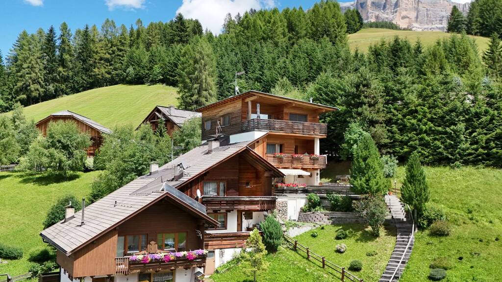 Dieses charmante Reihenhaus im Dorfzentrum von Badia erstreckt sich über drei Etagen und besticht durch insgesamt fünf Schlafzimmer sowie einen lichtdurchfluteten Wohnbereich mit Wand- und Deckentäfelung aus Holz und einem traditionellen Kachelofen. Eine separate Küche sowie fünf Badezimmer ergänzen das attraktive Raumangebot. Genießen Sie die Vorzüge einer Süd-West-Terrasse sowie eines Balkons mit herrlicher Aussicht auf die umliegende Bergwelt, ergänzt durch einen weiteren Balkon mit Blick ins Grüne - ideale Orte für entspannte Stunden im Freien. Weiters verfügt die sanierungsbedürftige Immobilie über ein Kellergeschoss, das ausgiebigen Stauraum bietet. Gemeinschaftliche Stellplätze im Freien sind vorhanden. Die Immobilie ist konventioniert und somit für Ortsansässige vorgesehen.