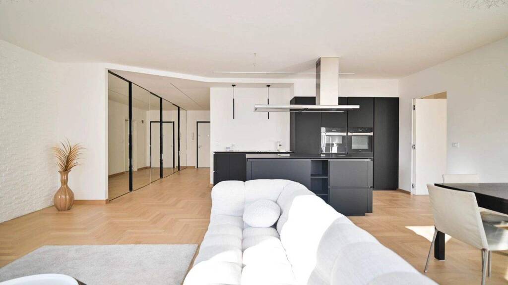 Die Wohnung empfängt mit einem großzügigen, offen gestalteten Wohnbereich, in dem Wohnzimmer und Küche harmonisch ineinander übergehen. Große Fensterfronten sorgen den Tag über für viel natürliches Licht und schaffen eine angenehme Wohnatmosphäre. Der Schlafbereich umfasst zwei gut geschnittene Schlafzimmer, die beide mit Klimaanlage ausgestattet sind und somit auch in den Sommermonaten hohen Wohnkomfort bieten. Ergänzt wird das Raumangebot durch zwei moderne Badezimmer sowie einen praktischen Kellerraum, der zusätzlichen Stauraum bietet.