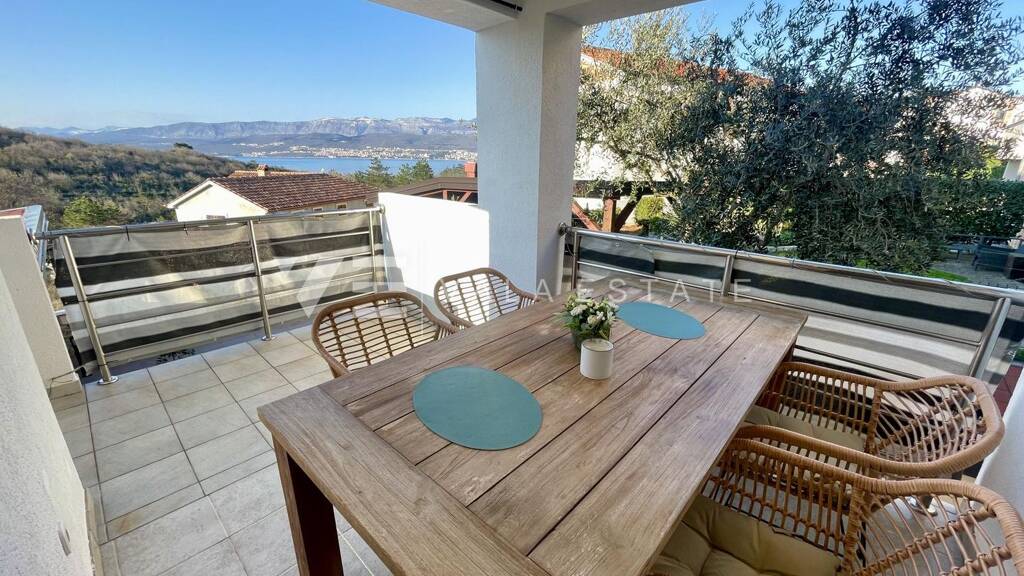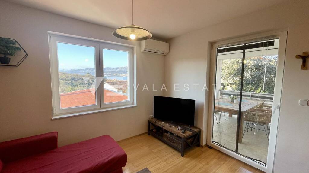 Immobilieninsel Krk, Silo - Zum Verkauf steht eine komfortable Ferienwohnung im Hochparterre eines Mehrfamilienhauses in bester Lage, nur 200 m vom Meer entfernt und in unmittelbarer Nähe zum Zentrum mit allen Annehmlichkeiten. Die 75 m² große Ferienwohnung besteht aus Eingangsbereich, Badezimmer, zwei Schlafzimmern, Wohnküche und Wohnzimmer mit Zugang zu einer Terrasse mit herrlichem Meerblick. Die teilmöblierte, klimatisierte Ferienwohnung verfügt über PVC-Fenster und -Türen, alle notwendigen Dokumente sind vorhanden und sie ist sofort bezugsfertig. Zur Ferienwohnung gehören ein 9 m² großer Abstellraum im Keller und ein Stellplatz im gemeinschaftlichen Innenhof. Aufgrund ihrer Lage eignet sie sich hervorragend zur Eigennutzung oder zur touristischen Vermietung. Die Immobilienagentur Vala Estate Malinska unterstützt Sie bei der sicheren und transparenten Eigentumsübertragung und der Abwicklung aller notwendigen Dokumente.