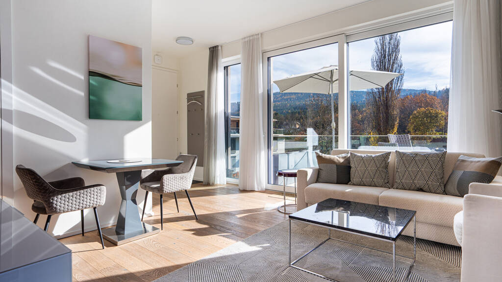 Besondere Highlights sind der exklusive Strandabschnitt nur für Eigentümer, die ganztägige Nutzung der Infrarotkabinen und Strandsauna, der 40%-Vorteil auf der Golfanlage Dellach sowie die hoteleigene Bootsanlegestelle.