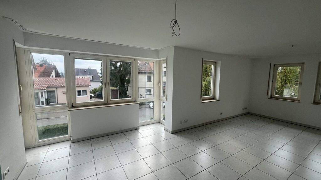 In einem gepflegten 9-Familienhaus aus dem Jahr 1993, das von der renommierten Firma Christian Mehl OHG in solider Massivbauweise errichtet wurde, erwartet Sie diese charmante 3,5-Zimmer-Wohnung im 1. Obergeschoss. Bereits beim Betreten überzeugt das Haus mit einem repräsentativen Eingangsbereich und einem hellen Treppenhaus, das einen einladenden ersten Eindruck vermittelt.