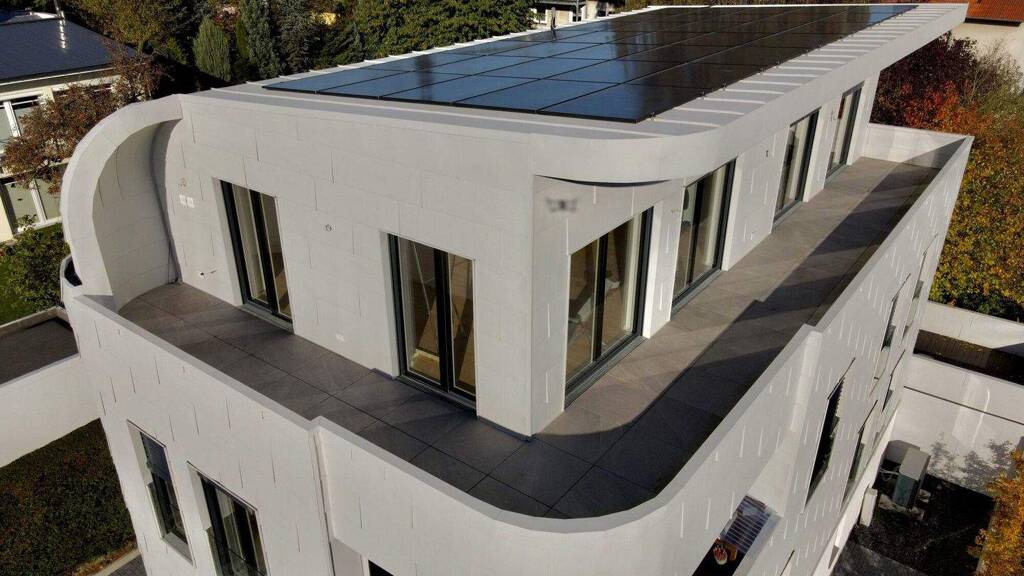 - KfW 40 plus Effizienzhaus mit dem höchsten Energiestandard (Wärmepumpe, Photovoltaik, 3-fach verglaste Fenster) - hochwertige Materialen verbaut - Design Eigentumswohnung mit einzigartiger Bauweise - Offener Wohn-/Essbereich - Abstellraum - Stellplatz mit Möglichkeit des Baus eines Carports - bodentiefe Fenster - großzügiger Balkon mit Süd-/Westausrichtung - elektrische Außenjalousien