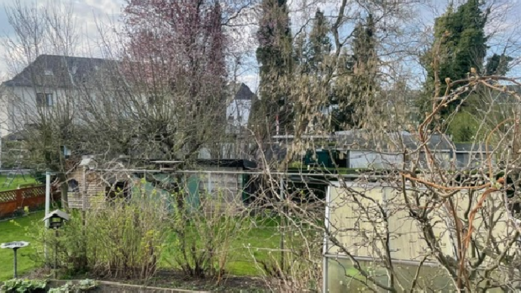 - großer Garten mit Obstbäume und Gewächshaus