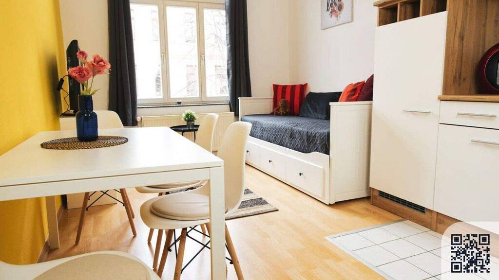 Fühlen Sie sich wie zu Hause in diesem komplett renovierten und neu möblierten 1-Zimmer-Apartment in Halle mit 45 Quadratmetern Wohnfläche. Die Wohnung befindet sich im zweiten Stock eines Gebäudes in einer ruhigen Seitenstraße. Das Highlight ist die gut ausgestattete Küche und das helle Schlafzimmer mit einem 1,60 m Boxspringbett. Der Wohnbereich umfasst ein Schlafsofa, das bei Bedarf für zwei Personen ausgezogen werden kann. Die Wohnung verfügt über einen gehobenen IKEA-Standard mit vielen Holztönen, wodurch ein gemütliches "Zuhause-Gefühl" entsteht. Die Küche ist mit einer Nescafé-Maschine, einem Kühlschrank, Kochplatten und einem Backofen ausgestattet. Das kleine Badezimmer ist schick und praktisch und verfügt über eine Dusche. Die Wohnung befindet sich im trendigen Paulusviertel im Norden der Innenstadt. Ein Edeka-Supermarkt und ein Bahnhof befinden sich in der Nähe. Es gibt auch zahlreiche nette Cafés und verschiedene Restaurants. Öffentliche Parkplätze stehen kostenlos auf der Straße vor dem Gebäude und in allen umliegenden Seitenstraßen zur Verfügung. Die Verfügbarkeit kann nicht garantiert werden, aber in der Regel findet man etwas in der Nähe. Die Innenstadt ist mit der Straßenbahn in 10 Minuten erreichbar.