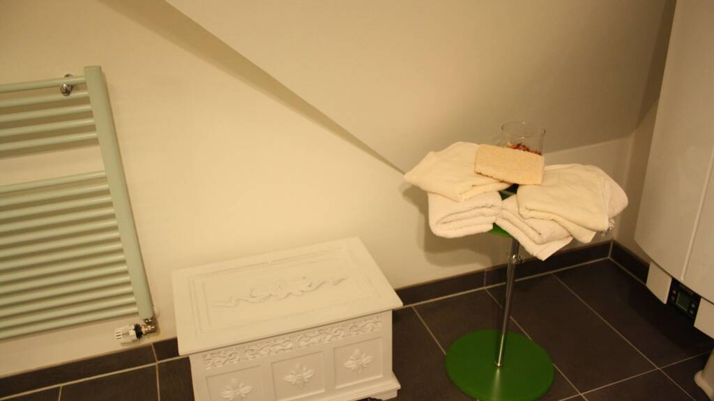 Bei Bezug von 2 Personen (ideal) befindet sich der Wohnbereich im Durchgangszimmer zum Bad. Bei Bezug von 4 Personen wird der Wohnbereich in einen Schlafbereich umgewandelt. Ein festes Einzelbett (auch als Couch nutzbar) und ein Klappsessel (mit Lattenrost) werden dann dort installiert und der Wohnbereich entfällt.