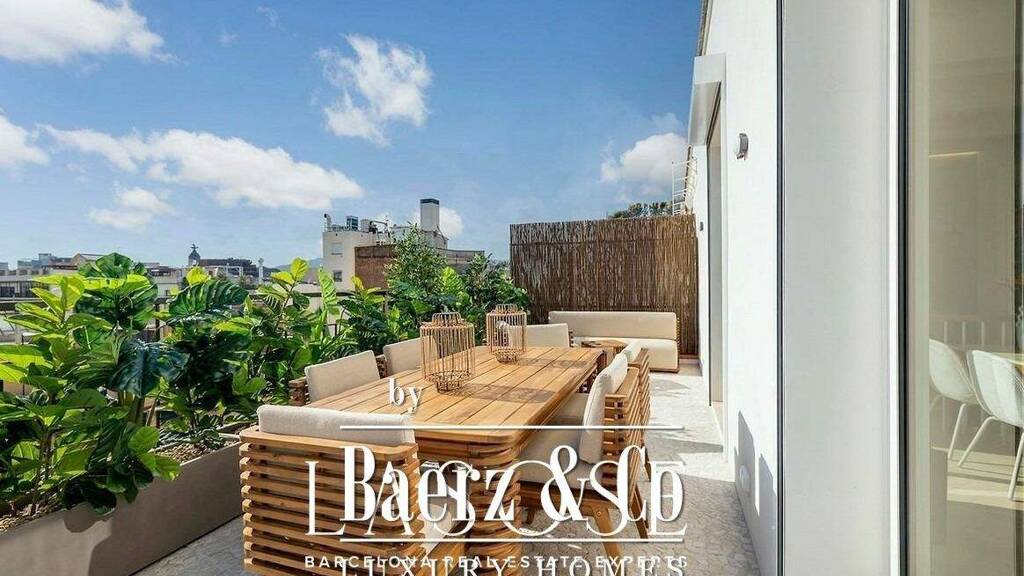 lasose presents next to the iconic former ritz hotel, this stunning 133 m2 duplex penthouse is set within a beautifully preserved modernist building, featuring a majestic entrance hall and two original elevators that evoke timeless charm.. . thoughtfully redesigned by nobohome, the top floor (6th and final) serves as the day area, where a bright and spacious living-dining room flows effortlessly into a fully equipped open-plan kitchen. this space opens onto a 22 m2 south-facing terrace - perfect for basking in the sun and enjoying panoramic views of the city.. . a stylish internal staircase connects to the lower floor (5th), dedicated to the night area. it features two bedrooms that share a sleek, contemporary bathroom, while the luxurious master suite boasts a walk-in closet and a private en-suite bathroom. all three bedrooms have direct access to an 18 m2 balcony, enhancing natural light and a sense of openness.. . in the hallway, built-in wardrobes discreetly house the washer, dryer, and heat pump. for added convenience and flexibility, both floors are equipped with independent entrance doors.. . this exceptional penthouse seamlessly blends modern comfort with classic elegance - all in one of barcelona's most sought-after locations.