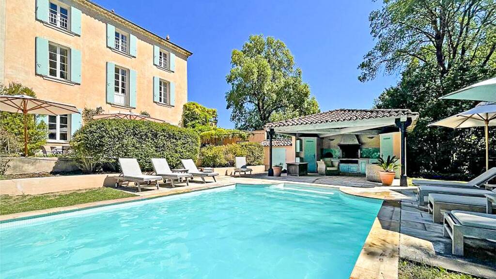 Expansive terraces, a heated swimming pool with pool house, a summer kitchen, and discreet parking complete the ensemble. In the basement, a vaulted cellar adds to the authenticity and charm of this unique estate.