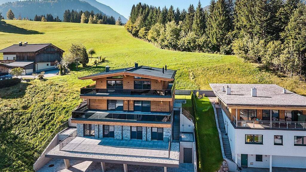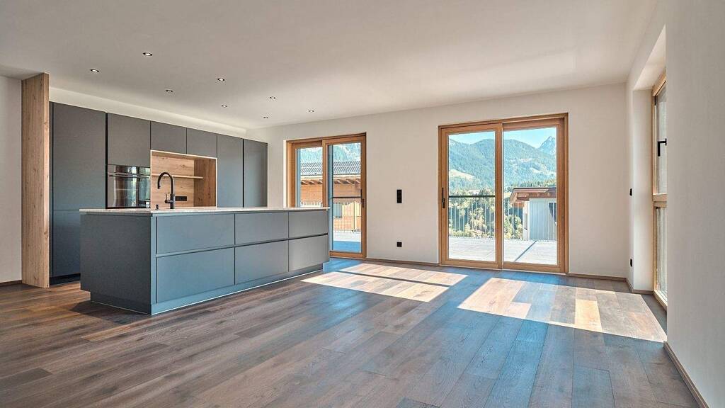 In sonniger Panoramalage mit Blick auf die umliegende Bergwelt entstand ein außergewöhnlicher Wohnkomplex mit zwei eleganten Maisonette-Wohnungen und einem exklusiven Penthouse.