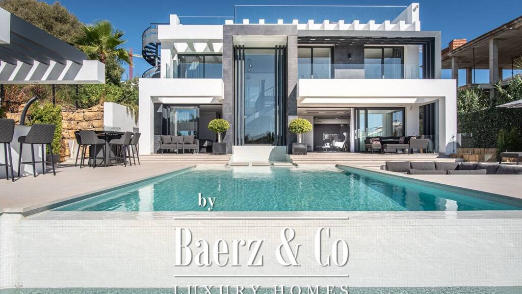 this 6 bedroom, 5 bathroom home sits on a plot of over 1000m2 with over 383m2 of liveable space plus solarium and terracing, walking in through the impressive front door opens you up to a spacious and bright living room area with a beautiful interior bespoke design and floor to ceiling windows which allow plenty of natural light to shine through.