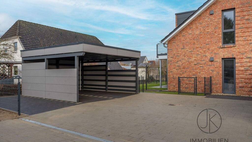 Ein PKW-Stellplatz oder Carport kann optional erworben werden, die Vorbereitung für eine Wallbox ist bereits vorgesehen. Ideal für alle, die auf Elektromobilität setzen.