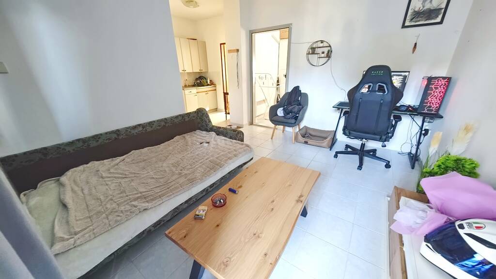 Die Gesamtfläche der Wohnung beträgt 35 Quadratmeter und umfasst ein Wohnzimmer mit Küche und Essbereich, ein Schlafzimmer, ein Badezimmer sowie eine überdachte Terrasse. Das Innere ist gepflegt, ordentlich und mit hochwertigen Möbeln sowie funktionaler technischer Ausstattung versehen. Einen besonderen Mehrwert bietet der Wohnung der dazugehörige, kleine und schön gestaltete Garten. Auf dem gleichen Grundstück steht außerdem ein eigener Parkplatz zur Verfügung. Neben Funktionalität und gutem Zustand überzeugt die Wohnung durch ihre vorteilhafte Ausrichtung und bietet einen schönen Blick auf die Küstenlandschaft.