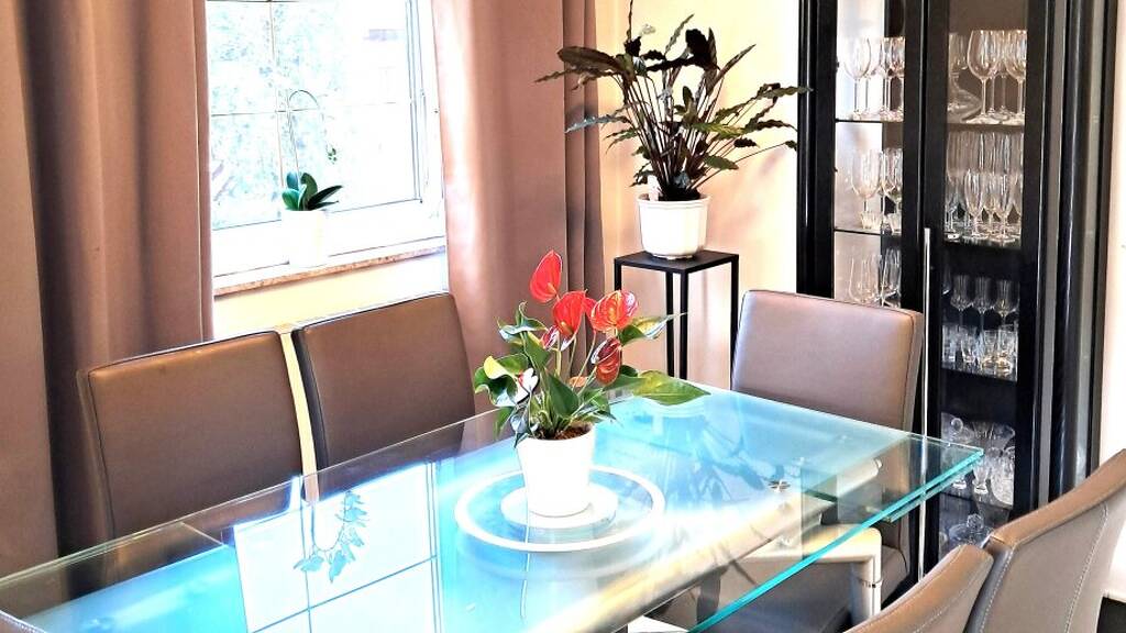 Für eine angenehme Raumtemperatur sorgt eine moderne Gas-Zentralheizung. Die Einbauküche ist mit allen notwendigen Geräten ausgestattet und bietet viel Stauraum für Ihre Küchenutensilien. Auf der sonnigen Südterrasse können Sie Ihren Morgenkaffee genießen oder den Tag entspannt ausklingen lassen.