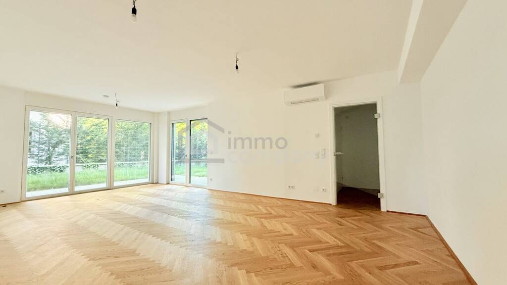 Die Böden in den Zimmern sind mit hellem Fischgrätparkett ausgeführt, die Badezimmer verfügen über stilvolle, großformatige Fliesen. Sämtliche Fenster und Türen bestehen aus Holz-Alu und sind mit Dreifach-Isolierverglasung ausgestattet. Beheizt wird über eine Fußbodenheizung mittels Wärmepumpe. Die Haupträume sind zudem mit Klimageräten ausgestattet.