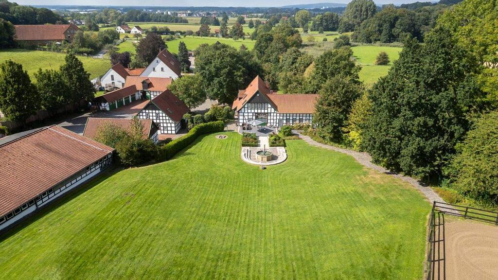 Schon die Einfahrt durch das repräsentative Tor eröffnet ein Erlebnis, das man nicht vergisst: Vor Ihnen breitet sich ein Anwesen aus, das auf rund 3,9 Hektar purem Traumgrund steht - eingebettet in eine sanfte Höhenlage, umgeben von der Ruhe, Kraft und Erhabenheit des Teutoburger Waldes. Dieses Anwesen ist jedoch nicht einfach eine Reitanlage. Es ist ein Ort der großen Momente. Ein Ort, der Geschichte atmet.
