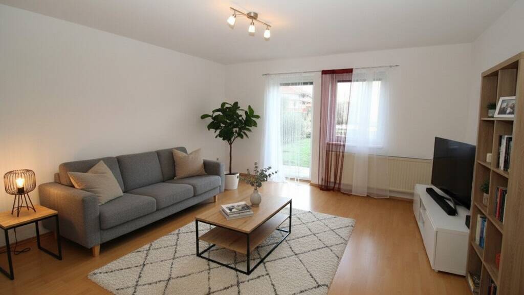"Die dargestellten Möbel und Einrichtungsgegenstände dienen der besseren räumlichen Vorstellung und wurden mittels KI visualisiert. Sie sind nicht Bestandteil der tatsächlichen Ausstattung der Immobilie."