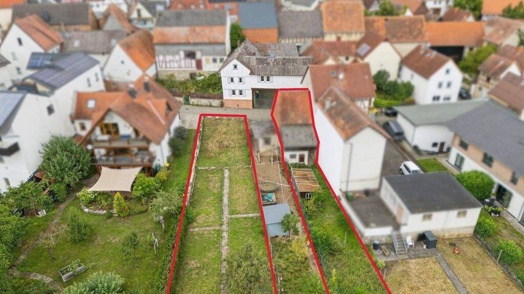 Dieses Immobilienangebot besteht aus insgesamt 3 Flurstücken, die links und rechts an der Talstraße 10 in Langgöns-Oberkleen angesiedelt sind: Das Flurstück 263 mit 271 m² Grundstück, auf dem das Wohnhaus mit Tordurchfahrt und Garage und 2 weiteren Nebengebäuden steht, das Flurstück 277, unterhalb der Talstraße gelegen mit 395 m² Grundstücksfläche, nur 7-10 Meter breit, dafür aber ganze 45 Meter lang, aktuell als Garten genutzt und das Flurstück 275 mit 210 m² Fläche, vorne an der Straße mit einer extra Scheune bebaut, gut als Garage oder Abstellfläche nutzbar und dahinterliegender Gartenfläche. Beide Flurstücke sind als Bauland ausgewiesen, leider aber sehr lang und schmal und durch ein dazwischenliegendes fremdes Flurstück unterbrochen.