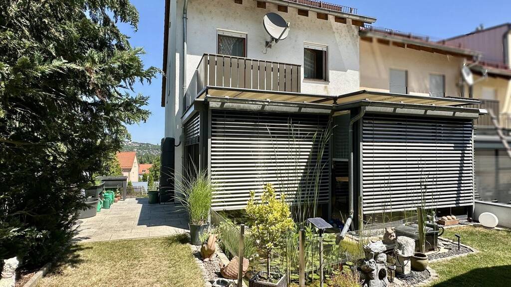 Kurzfakten: - Reiheneckhaus, Baujahr 1997 - ca. 115 m² Wohnfläche, 4 Zimmer - großes Wohnzimmer mit Zugang zur Süd-West-Terrasse (2016 erneuert) - verglaster Freisitz (neu 2016) mit Sonnenschutz-Jalousien und Aufdach-Markise (2021) - Parkett- und Fliesenböden - Tageslichtbad mit Wanne und Dusche - neue Gas-Brennwertheizung (2024) - Garage mit elektrischem Tor (2021), im Untergeschoss - Garten mit Teich und Geräteschuppen, Grundstücksgröße ca. 218 m² - ruhige, sonnige Siedlungslage