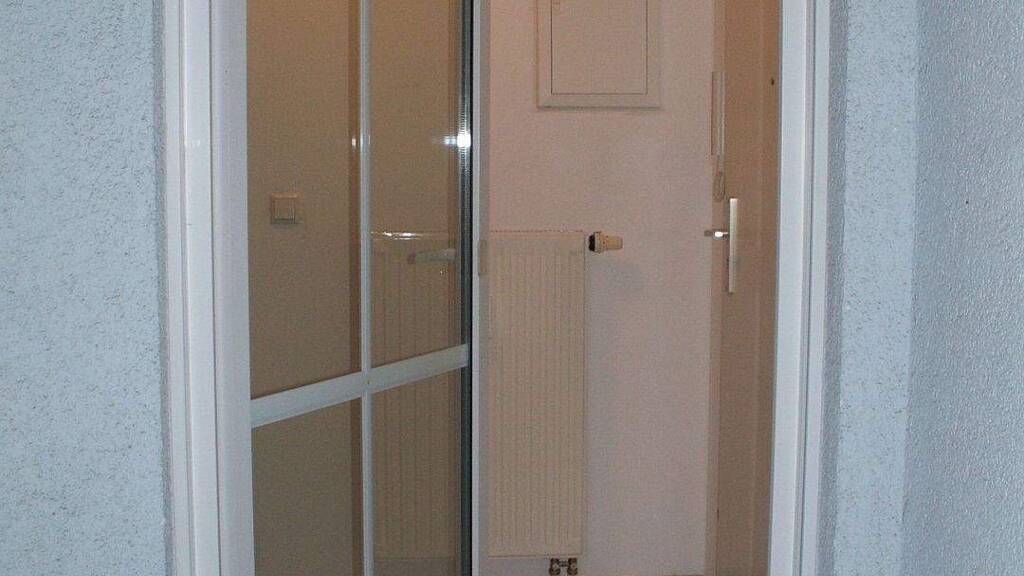 Bei der Wohnung handelt es sich um eine 1-Raumwohnung im 1. Obergeschoß mit Balkon. Die Wohnung ist bereits mit einer Miniküche in Form eines Miniküchenschranks, inkl. Kühlschrank, Herdplatten und Spüle ausgestattet. Der Blick vom Balkon zeigt den ruhig gelegenen Innenhof.