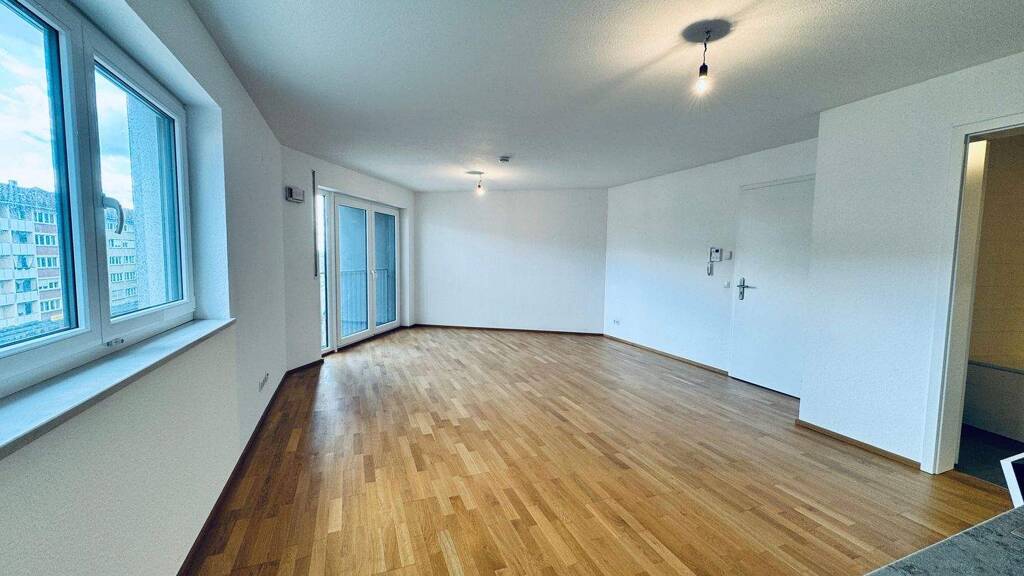 Die Wohnung verfügt über ein Schlafzimmer, ein Badezimmer sowie insgesamt zwei Zimmer. Der offene Wohn- und Essbereich bietet ausreichend Platz für gemütliche Abende zu zweit. Die große Fensterfront sorgt für eine helle und freundliche Atmosphäre in der gesamten Wohnung. Die moderne Küche ist mit allen notwendigen Geräten ausgestattet und lädt zum Kochen ein.