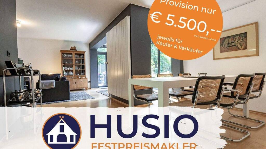 Herzlich Willkommen bei HUSIO - Ihr Festpreismakler. Unsere Provision beträgt unabhängig des Immobilienkaufpreises € 5.500,-- inkl. gesetzl. MwSt. Weitere Informationen siehe Provisionshinweis.