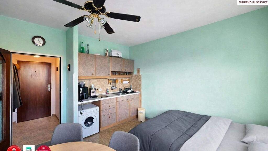 Zum Verkauf steht eine helle, möblierte 1-Zimmer-Wohnung im 3. Stock eines thermisch sanierten Mehrparteienhauses nur wenige Gehminuten von der Mödlinger Fußgängerzone entfernt.