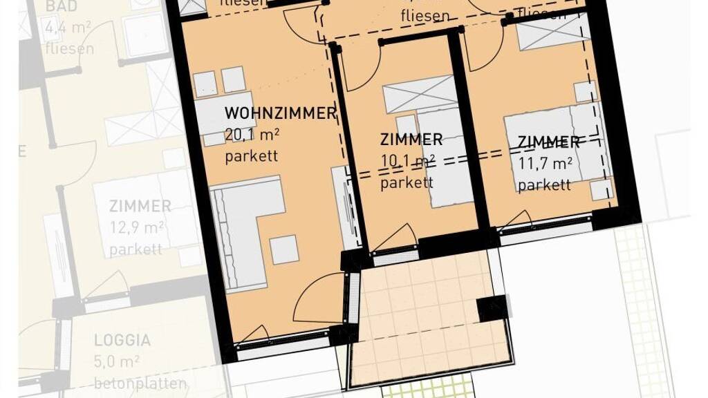 Sollten Sie mehr Wohnraum benötigen, besprechen Sie das gerne mit dem Vertriebsteam der Haring Immobilientreuhand. Es besteht die Möglichkeit, übereinander liegende Wohnungen zur Maisonette-Wohnung (4 Zimmer) zusammen zu legen bzw. nebeneinander liegende Wohnungen zu verbinden!