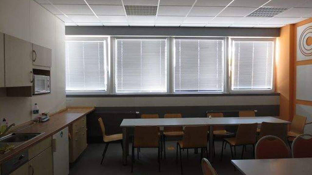 Der Büroanteil teilt sich in neun Büroräume auf. Ein Pausenraum, diverse Sozialräume, Lagermöglichkeiten, sanitäre Einrichtungen (mit Dusche, Waschbecken und WC`s), Flure, Putzmittelraum, Technikraum, ein Besprechungsraum sowie Archivräume sind als weitere Nebennutzflächen vorhanden.