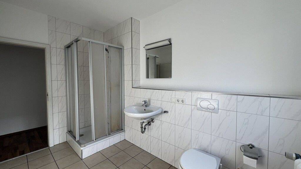 Über eine Treppe gelangen Sie ins 1. Obergeschoss. Hier befinden sich drei weitere Wohnräume. Diese können ideal als Schlafzimmer für Wohngemeinschaften oder als Kinder- und Arbeitszimmer für Familien genutzt werden. Alle sind mit einem schönen Laminatboden in Holzoptik ausgestattet und angenehm hell. Auch ein zweites, größeres Tageslicht-Badezimmer befindet sich auf dieser Etage.