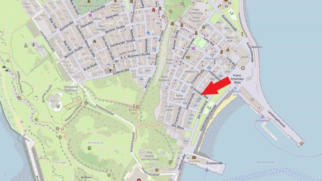 Deutschlands einzige Hochseeinsel Helgoland liegt ca. 49 km westlich vor der Küste Schleswig-Holsteins und ca. 44 km nördlich der Insel Wangerooge. Die Insel ist mit einem regelmäßigen Fährverkehr ab Cuxhaven und Büsum sowie per Katamaran ab Hamburg und Wedel verbunden. Darüber hinaus fliegt eine regionale Fluglinie mehrmals täglich von verschiedenen Abflugorten am Festland auf die benachbarte Badeinsel "Helgoland Düne". Zwischen der "Düne" und der Hauptinsel verkehrt regelmäßig eine kleine Pendlerfähre, die anreisende Fluggäste auf die Hauptinsel und angereiste Urlaubsgäste zum Baden auf die Düne bringt. Helgoland liegt im Kreis Pinneberg in Schleswig-Holstein und ist mit einer Größe von nur ca. 1 km² überschaubar klein. Die Insel hat rund ca. 1.260 Einwohner (Stand Dezember 2018). Die Bettenkapazität ist mit ca. 2.200 Betten in Privat- quartieren, Pensionen und Hotels angegeben. Helgoland teilt sich in die oben beschriebene Hauptinsel und die benachbarte Strandinsel "Düne" auf. Die Hauptinsel teilt sich in drei Ortsteile auf: Oberland, Mittelland und Unterland. Die neuen Bereiche Nordostland und Südhafen sind im 20 Jahrhundert sind durch Landgewinnung entstanden. Während das Unterland überwiegend gewerblich geprägt ist und sich dort die größten Hotels, Einzelhandelsgeschäfte und vor allem viele Geschäfte befinden, in denen das zollfreie Einkaufen möglich ist, sind Mittel- und Oberland eher kleinteiliger angelegt und durch Wohnnutzung geprägt. Ferienvermietung findet hier auch, aber nur im kleineren Maße statt.