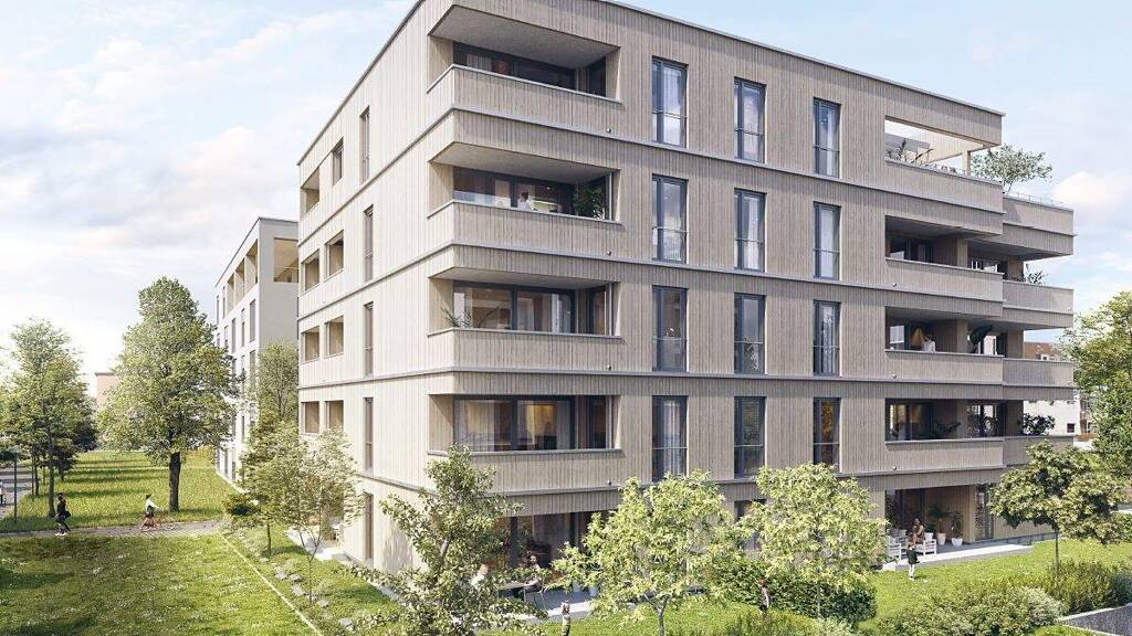 Die 3- bis 5-Zimmer-Eigentumswohnungen verfügen über 81 bis 114 m² Wohnfläche, Balkon bzw. Terrasse. Die Erdgeschosswohnungen erhalten Gartenanteile zur privaten Nutzung. Eine attraktive Gemeinschaftsterrasse im Dachgeschoss bietet zusätzliche Aufenthaltsqualität und Raum für Begegnungen. Die Parkierung erfolgt in der Tiefgarage - mit dem Aufzug erreichen Sie bequem Ihre Wohnebene.