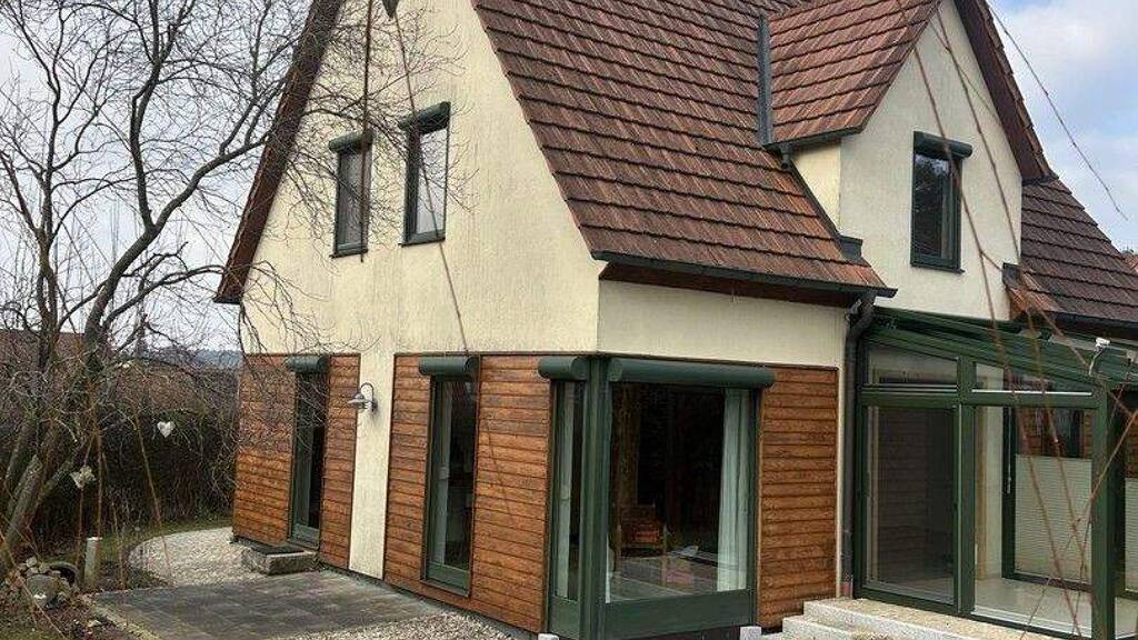 Bäume, gewachsen in heimischen Wäldern, zur rechten Mondphase geschlagen und dann qualifiziert von einem regionalen Fachbetrieb zu einem Haus gebaut - so ist es einst entstanden: Dieses Juwel aus natürlicher Lebendigkeit und Harmonie. DRINNEN WIE DRAUSSEN fühlt es sich im offenen Wohn- Essbereich samt Küche an. Rundum bodentiefe Fenster bringen die Sonne vom Auf- bis zum Untergang direkt ins Haus. Gleichzeitig kann ihr Blick in den wunderschönen Naturgarten schweifen, vom Wintergarten aus auch in den Himmel. Die ökologischen Baustoffe schaffen eine behagliche Atmosphäre. Im EG befindet sich außerdem ein Gäste- WC und ein Zimmer, von dem aus Sie direkt ins Carport gelangen. Hier bietet sich auch die Möglichkeit für eine selbständige Tätigkeit. Im OG befinden sich Badezimmer und 3 Schlafzimmer. Über die Holztreppe gelangen Sie ins Dachgeschoss, wo viel Stauraum vorhanden ist. 2 Dachfenster im Flur schaffen zusätzliche Helligkeit. Im Anbau des Hauses findet sich eine Werkstatt, im Garten ein Gartenhaus. Auf 128 qm Wohnfläche eröffnet sich ein Wohnkonzept, das Natur, Licht und Freiheit auf´s angenehmste miteinander verbindet.