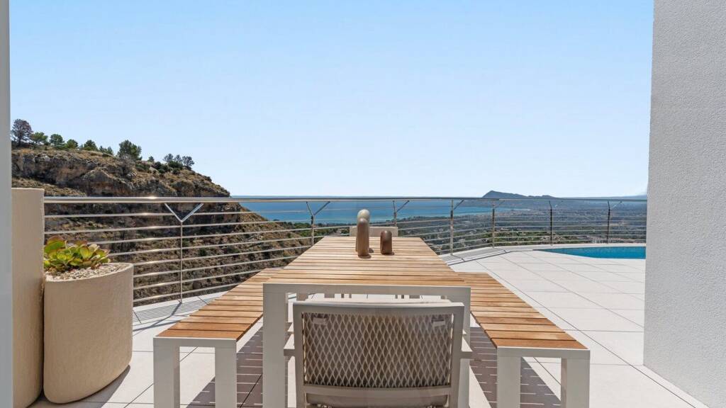 Gelegen in der exklusiven Lage von Altea bieten diese Immobilien ein einzigartiges Wohnerlebnis mit einem atemberaubenden Meerblick. Die Anlage besteht aus fünf Wohnungen, von denen jede maximalen Komfort und Privatsphäre bietet. Die verfügbaren Typologien umfassen Optionen von Bungalow und Villa, angepasst an die Bedürfnisse jeder Familie. Die Nähe zum Flughafen, nur 9,478 km entfernt, erleichtert den Zugang zu internationalen Verbindungen und macht diese Wohnungen zur idealen Wahl sowohl für Dauerwohnen als auch für Urlaubsaufenthalte. OUTDOOR-BEREICHE Die Außenbereiche dieser Immobilien sind einfach spektakulär. Jede Wohnung verfügt über einen privaten Pool, perfekt zum Genießen des mediterranen Klimas. Die großzügigen Terrassen bieten den idealen Raum, um sich zu entspannen und dabei das Meer zu bewundern. Darüber hinaus sind die Immobilien mit Ladestationen für Elektroautos ausgestattet, was das Engagement für Nachhaltigkeit und modernen Komfort unterstreicht. Die gemeinschaftlichen Gärten bieten zusätzlichen Raum für Outdoor-Aktivitäten und ergänzen die ruhige, natürliche Atmosphäre der Umgebung. INNENBEREICHE Das Innere dieser Wohnungen ist darauf ausgelegt, maximalen Komfort und Funktionalität zu bieten. Die Grundrisse umfassen Wohnungen mit vier oder fünf Schlafzimmern und fünf oder sechs Badezimmern, angepasst an verschiedene Familienbedürfnisse. Die Innenräume sind vollständig möbliert und mit modernster Ausstattung versehen. Das Smart-Home-System sorgt für eine effiziente Haussteuerung, während Fußbodenheizung und Klimaanlage das ganze Jahr über eine angenehme Temperatur gewährleisten. Eingebaute Schränke bieten praktische und elegante Aufbewahrung, und die Video-Gegensprechanlage erhöht die Sicherheit. GEMEINSCHAFTSFLÄCHEN Die Gemeinschaftsflächen dieser Residenz umfassen gepflegte Gärten und eine gemeinsame Garage, die den Bewohnern zusätzlichen Komfort und Sicherheit bietet.