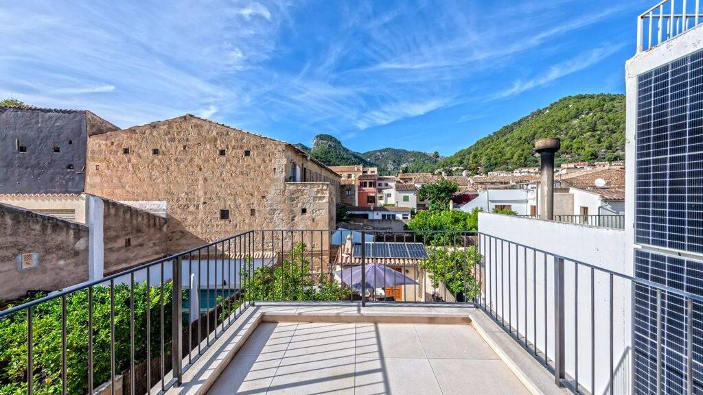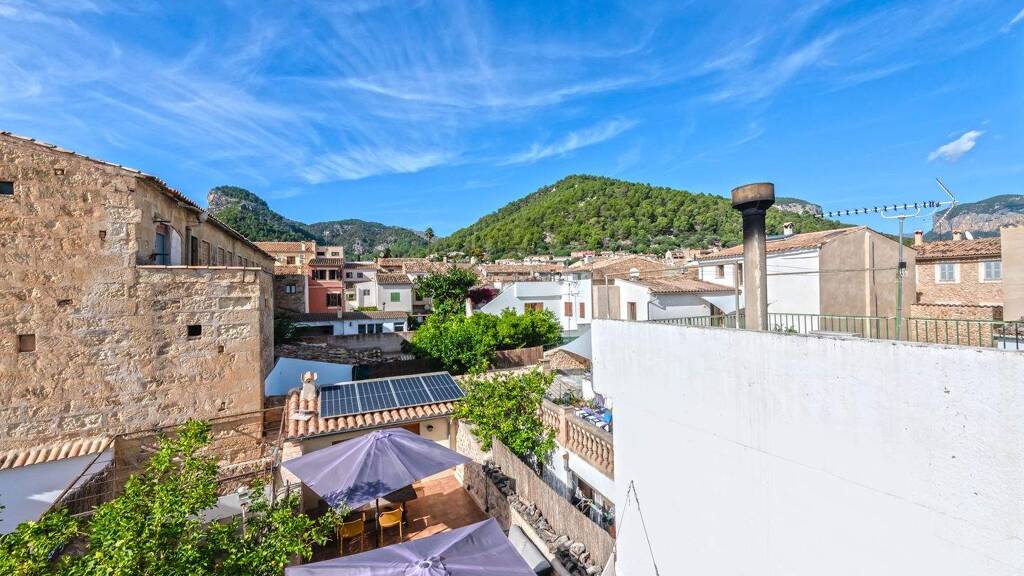 Dieses schöne Dorfhaus in Alaró wurde komplett renoviert und verbindet harmonisch traditionellen Charakter mit modernem, nachhaltigem Komfort. Im EG geht eine geräumige Eingangshalle nahtlos in den offenen Küchen- und Wohnbereich über. Diese Ebene bietet eine helle, einladende Atmosphäre, ideal zum Entspannen und geselligen Beisammensein. Außerdem gibt es ein Gäste-WC mit Waschraum. Von hier gelangt man auf eine Terrasse mit kleinem Salzwasserpool mit elektrolytischem System und gemütlichen Sitzbereichen. Der erste Stock öffnet sich zu einer hellen Galerie, die als Büro oder Leselounge genutzt werden kann. Auf dieser Ebene befinden sich zwei weitere Schlafzimmer und ein Badezimmer. Die zweite Etage ist der Master-Suite gewidmet, die über einen geräumigen Ankleidebereich und ein Badezimmer mit Badewanne und Dusche verfügt. Hochwertige Oberflächen und großzügige Proportionen schaffen eine Atmosphäre von raffiniertem Komfort. Von hier gelangen Sie auf eine schöne Terrasse mit fantastischem Blick auf die Landschaft. Weitere Merkmale sind eine Solaranlage mit Batterie, elektrische Fußbodenheizung im EG und in den Bädern, hocheffiziente Klimaanlagen sowie zwei schwedische Holzöfen - einer im Wohnzimmer, einer im Hauptschlafzimmer -, die für ein angenehmes Raumklima sorgen. Die Ausstattung der Immobilie spiegelt außergewöhnliche Qualität und Liebe zum Detail wider: Grohe-Armaturen, Vorinstallation für ein Sonos-Soundsystem und kabelgebundene Internetanschlüsse. Ein bezugsfertiges, komfortables, umweltfreundliches Haus voller Charme - perfekt, um den mediterranen Lebensstil in einem der schönsten Dörfer Mallorcas zu genießen. Bitte fragen Sie nach weiteren Informationen oder einem Besichtigungstermin. Wir übernehmen keine Haftung für die bereitgestellten Informationen. Kensington Referenz: KPP08211