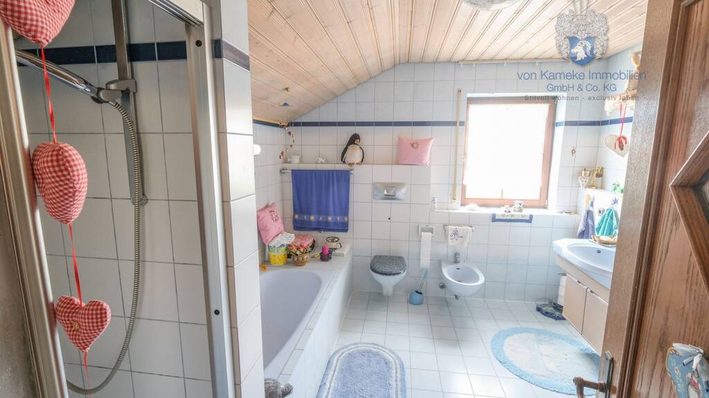 . Heizung Pauschal in der Miete bereits enthalten! . 3fach verglaste Fenster mit Schallschutz auf der Südseite im EG teilweise elektrische Rollläden . Gewächshaus aus 2021 . Fußbodenheizung im Fliesenbereich EG und Bäder OG . PV-Anlage mit 6kwp Leistung aus 2015 Strom darf der Mieter nutzen! . Elektrischer Garagentorantrieb . 2 zusätzliche Stellplätze im Einfahrtsbereich für Gäste oder als Wendehammer geeignet . Brunnen für Gartenbewässerung vorhanden . Kinder und Elternbad separat im OG . 2 Balkone im OG