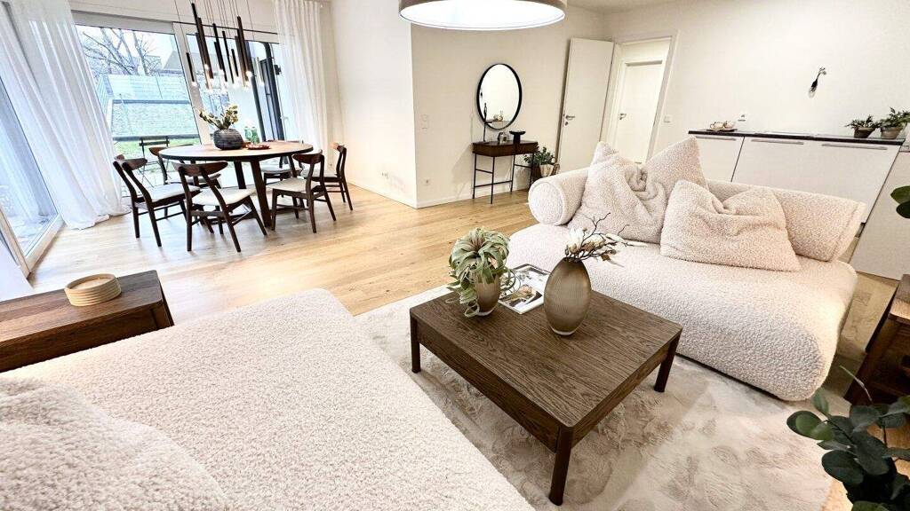 Die Ausstattung überzeugt auf ganzer Linie: Edler Eichendielenparkett, Smart-Home-System, Fußbodenheizung und integrierte Kühlung schaffen eine Kombination aus zeitloser Eleganz und technischer Raffinesse.