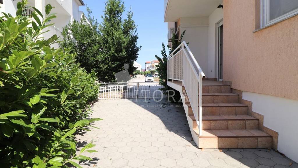 Srima, komplett möblierte, komfortable 2-Zimmer-Wohnung mit eigenem Garten. Die Wohnung befindet sich im Hochparterre eines Wohngebäudes, nur 440 Meter vom Strand entfernt. Sie ist nach Süden ausgerichtet und hat eine Nutzfläche von 62,50 m². Sie besteht aus einem Flur, einem Badezimmer, zwei Schlafzimmern - eines davon mit eigenem Balkon - sowie einem großzügigen Wohnzimmer mit Küche und Essbereich, das Zugang zu einer überdachten großen Terrasse mit direktem Zugang zum Garten bietet. Der Garten ist vollständig eingezäunt, größtenteils gepflastert und mit dem Auto zugänglich. Die Wohnung ist mit drei Klimaanlagen ausgestattet. Sie ist komplett möbliert und das gesamte Mobiliar ist im Kaufpreis enthalten. Zur Wohnung gehört ein gekennzeichneter Parkplatz. Die Entfernung zum Stadtzentrum beträgt 1400 Meter.
