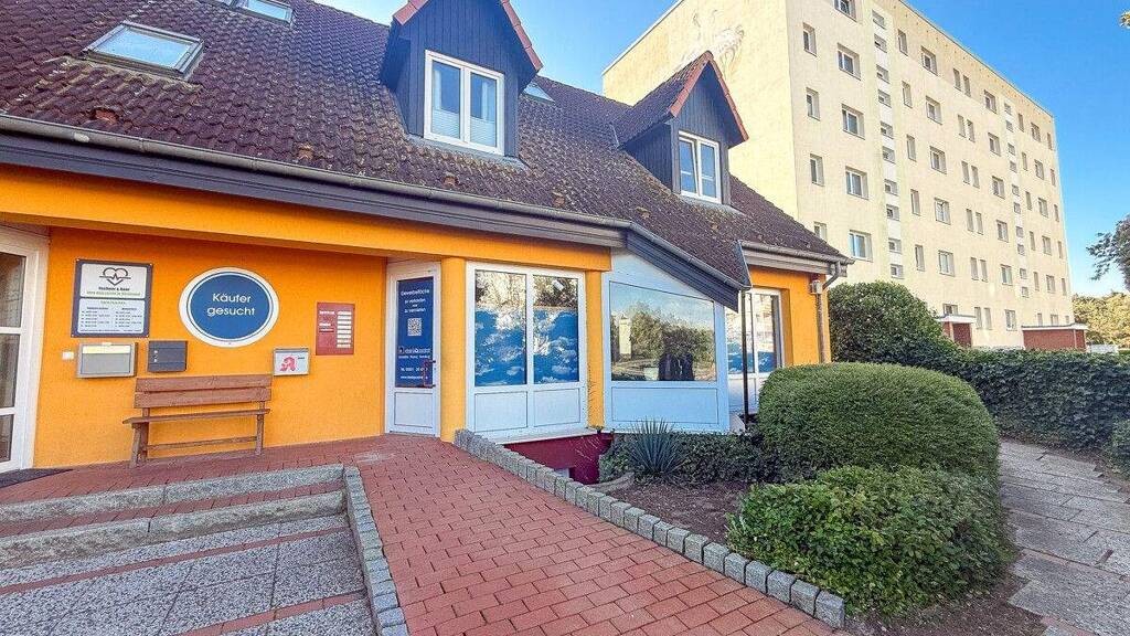 Grünhufe ist ein gewachsener Stadtteil im Westen Stralsunds, geprägt von Wohngebieten, lebendigem Alltag und kurzen Wegen. Hier wird gewohnt, gearbeitet und eingekauft - ein Umfeld, das ideale Voraussetzungen für Gewerbe bietet, die nah am Menschen und seinem Alltag agieren. In unmittelbarer Umgebung finden sich große Wohnanlagen, kleinere Einfamilienhaussiedlungen sowie Supermärkte, Bäcker, Apotheken, Ärzte und Handwerksbetriebe. Diese Mischung sorgt für eine konstante Nachfrage und verleiht dem Standort seine alltägliche Lebendigkeit. Im selben Gebäude befindet sich derzeit eine Arztpraxis, was die Lage zusätzlich belebt und sie besonders für gesundheitsnahe Dienstleistungen attraktiv macht.