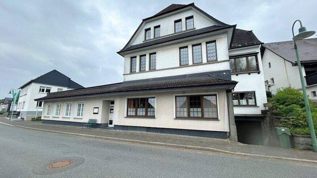 Diese Immobilie liegt zentral im Herzen von Hirschberg und kombiniert ein Zweifamilienhaus mit einer Gewerbeeinheit zzgl. Doppelgarage.
