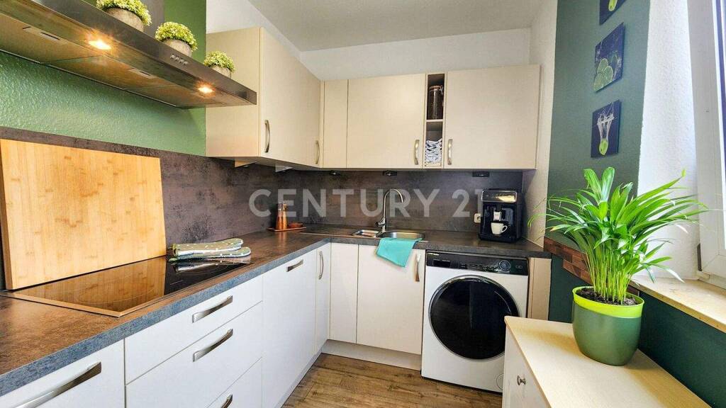 Das Herzstück der Wohnung ist das Wohn-Esszimmer. Es besticht durch seine offene Atmosphäre und dient als zentraler Dreh- und Angelpunkt der Einheit. Von hier aus gelangen Sie direkt in die funktionale, perfekt integrierte Küche sowie auf den sonnigen Balkon. Genießen Sie dort entspannte Stunden im Freien oder den ersten Kaffee am Morgen. Die liebevoll gepflegte Einbauküche wartet nur auf ihren Einsatz.