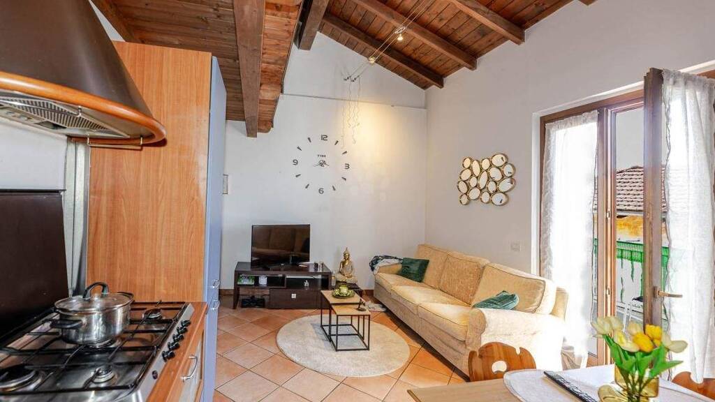 In dem charmanten Dorf Musadino (Porto Valtravaglia) bieten wir eine gemütliche ca. 90 m² große Zweizimmerwohnung im Obergeschoss zum Verkauf an. Das Objekt besteht aus einem offenen Wohn/Esszimmer mit Küchenzeile und Zugang auf einen sonnigen Balkon mit Blick auf den See und über die Dächer des Dorfs, Schlafzimmer und Badezimmer mit Dusche und Fenster. Der obere Bereich ist über eine Treppe begehbar und bietet Platz für zusätzlichen Stauraum. Insgesamt befindet sich die Wohnung in einem sehr gepflgten Zustand. Beheizt wird über eine Brennwerttherme (Gas). Ein PKW-Stellplatz vervollständigt das Angebot.
