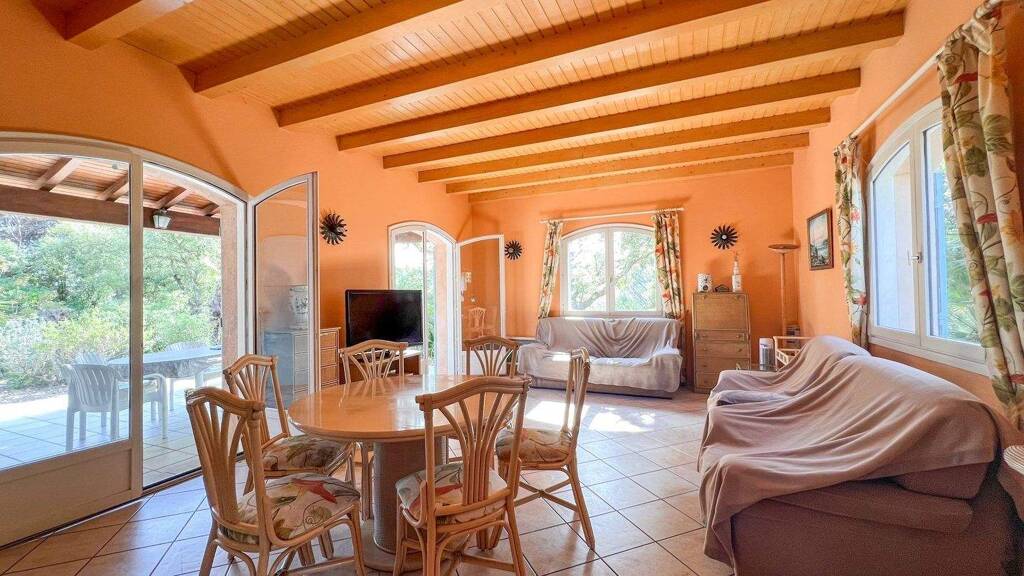 Located close to the sea and the centre of Les Issambres, this peaceful villa sits on the edge of a green space, offering privacy and a tranquil setting.