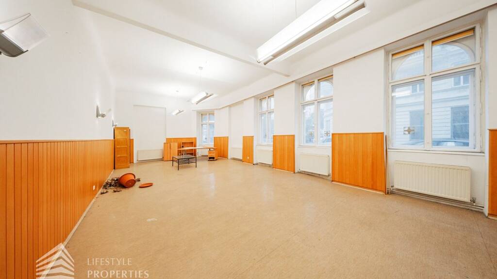 Hierbei handelt es sich um eine ca. 56 m² große unrenovierte Altbaufläche, welche in eine Wohnung umgebaut werden kann. Hierzu gibt es bereits eine Entwurfsplanung (siehe Anhang). Die ursprüngliche Bürofläche wurde zwischenzeitlich bereits zu Wohnzwecken umgewidmet. Die leicht über dem Erdgeschoß gelegen Fläche verfügt über hohe Räume sowie große Fensterflächen, welche eine gute Belichtung garantieren.