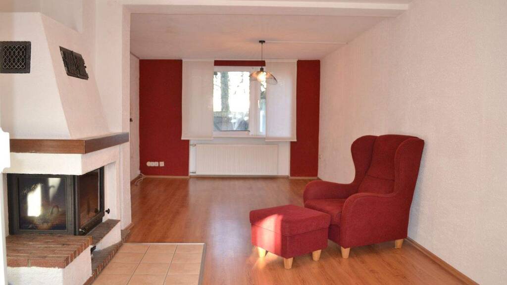 Diese charmante Doppelhaushälfte bietet Paaren oder einer kleinen Familie ein gemütliches Zuhause mit viel Platz zum Leben. Auf rund 103 m² Wohnfläche verteilen sich fünf Zimmer auf zwei Ebenen. Herzstück des Hauses ist das großzügige Wohnzimmer mit offenem, repräsentativem Kamin, der besonders an kühleren Tagen für eine angenehme und behagliche Atmosphäre sorgt.