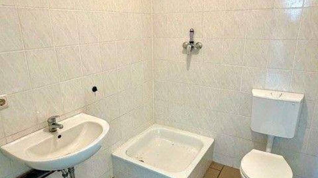 Dieses Gewerbe im Erdgeschoss ist gut von der Straße aus begehbar. Es sind 3 Räume (ein Durchgangszimmer) vorhanden, eine offene Küche, ein Abstellraum und ein Bad mit Dusche. Die Fußböden sind mit einem PVC-, einem Teppich- sowohl Fliesenbelag ausgestattet.